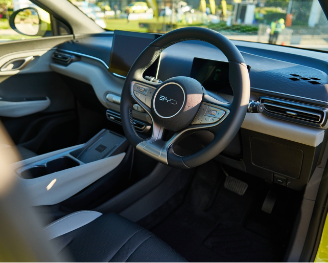 The Dynamic model is equipped with a 38.8 kWh Blade Battery, offering a WLTP combined range of 295 km. It delivers 55 kW (75 PS) of power to the front wheels and supports DC charging up to 40 kW, allowing for a 30-80% charge in just 30 minutes. The Comfort model features a 30 kWh Blade Battery with a WLTP combined range of 232 km, powered by a 55 kW front-wheel-drive motor with a maximum DC charging rate of 30 kW.