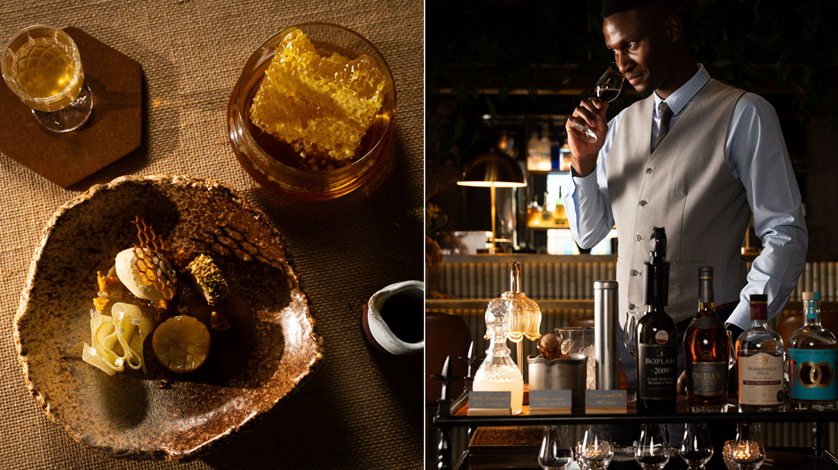 Working in harmony with each plate are the wine and non-alcoholic pairings offered across both the Global Tasting and Explorer Menus. Each pairing has been carefully selected by SALON’S award-winning sommelier Tadiswa Chikwanha, who has transformed the beverage experience at SALON, introducing Seasonal Cocktails and refining the wine list of boutique Cape estates.